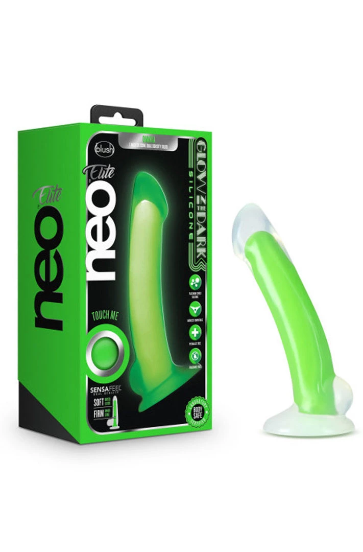 Neo Elite Glow in the Dark Omnia Silicone Dual Density Dildo will bring new light to your bedroom! Neo Elite Glow in the Dark dildos feature SENSA FEEL dual density technology: a see-through layer over a firm core that shines in the darkness. The two-layer construction creates an ultra-realistic feel, soft yet firm. Neo Elite Omnia has a smooth, curved shaft to lightly massage the G- or P-spot. Stick its strong suction cup base onto any flat surface, or fit it into your favorite harness. Made of 100% platinum cured silicone, Neo Elite Glow in the Dark dildos are body safe, phthalate-free, and easy to clean.