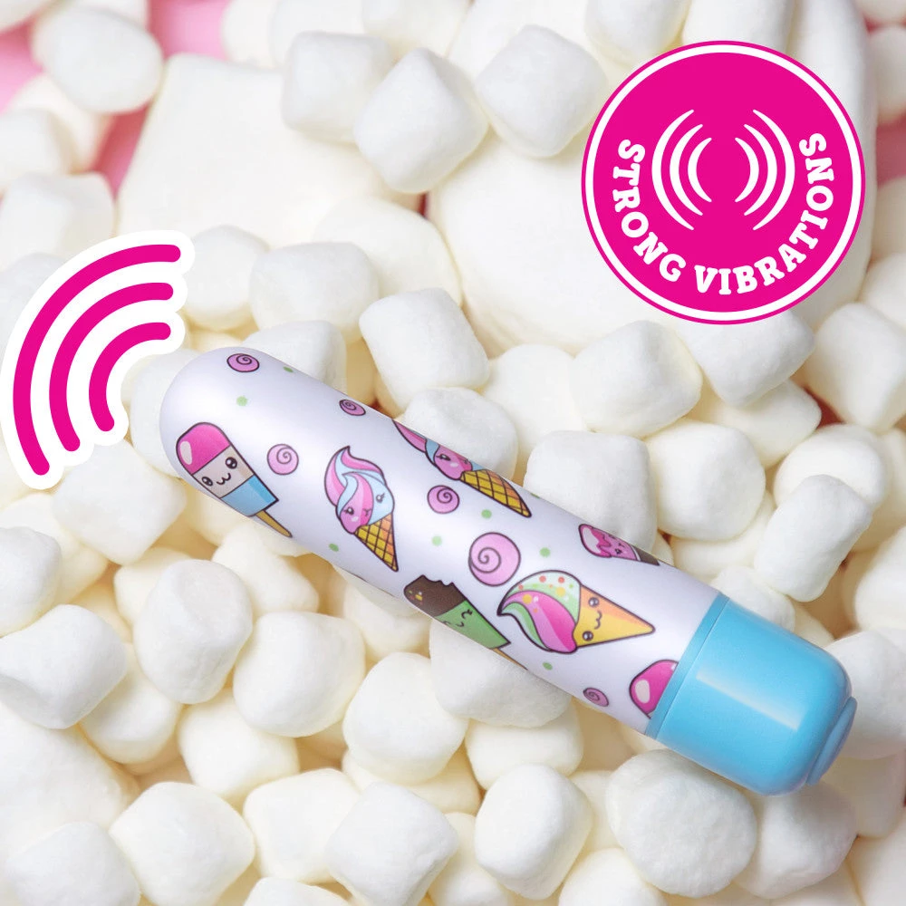 Who knew pleasure could be this cute? The Collection Sweets limited-edition bullet will make you smile with joy with every use. This bullet will make an adorable addition to any collection and is travel-friendly. Bullet is made of smooth ABS plastic and is fully waterproof. The quiet, powerful one- speed vibrations are controlled by an easy push button. The Collection Sweets Bullets require 1 AAA battery (sold separately).