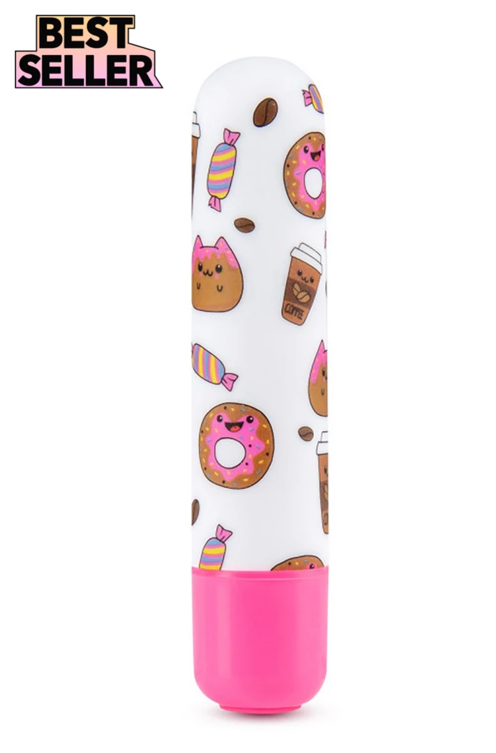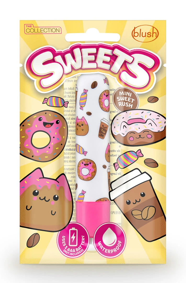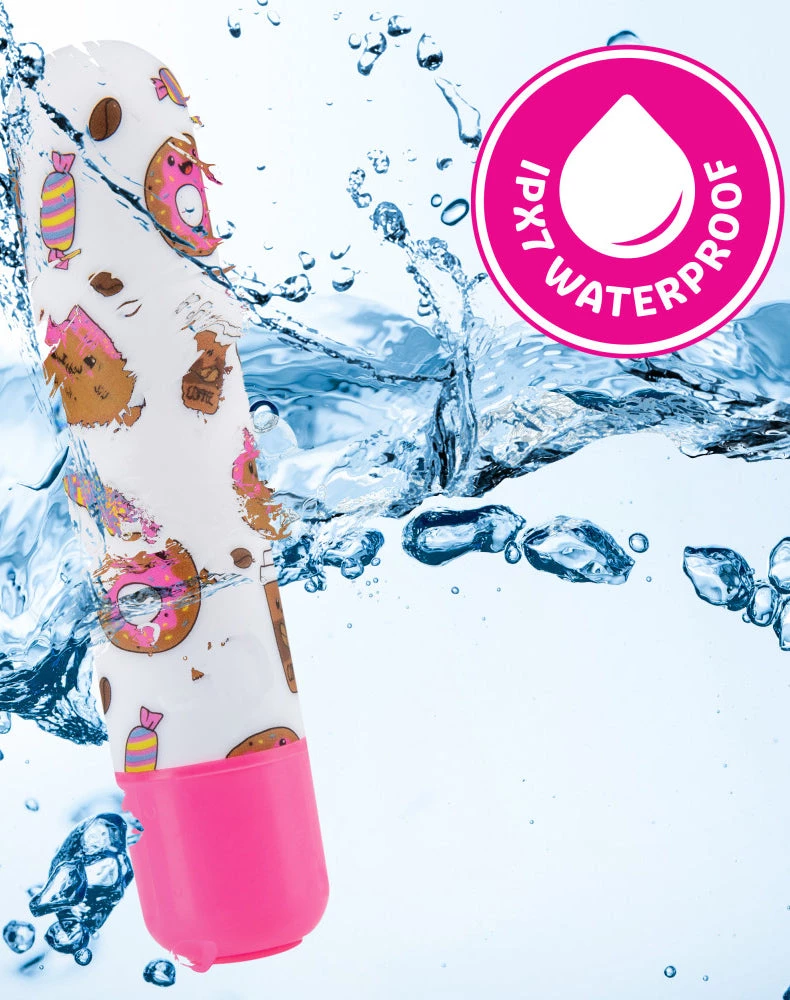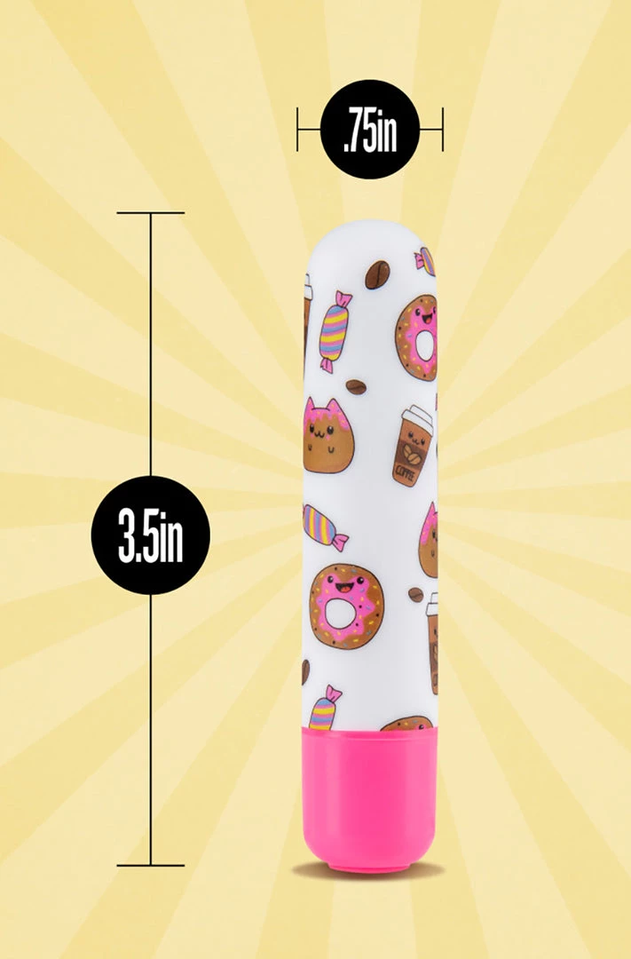 Who knew pleasure could be this cute? The Collection Sweets limited-edition bullet will make you smile with joy with every use. This bullet will make an adorable addition to any collection and is travel-friendly. Bullet is made of smooth ABS plastic and is fully waterproof. The quiet, powerful one- speed vibrations are controlled by an easy push button. The Collection Sweets Bullets require 1 AAA battery (sold separately).