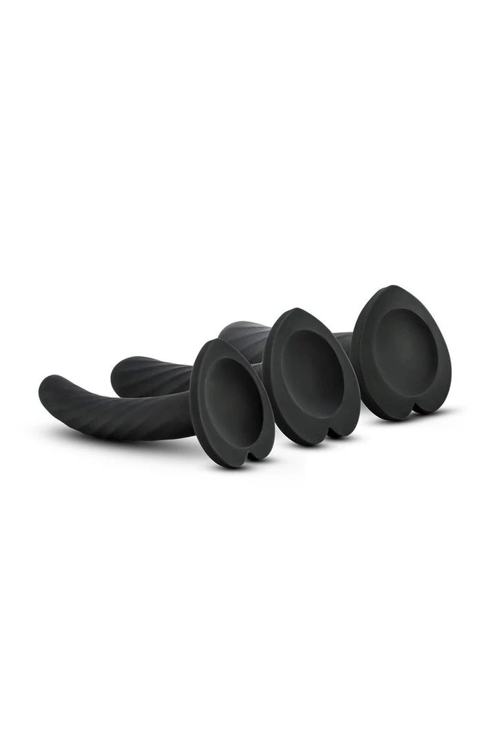 Set of 3 Temptasia Twist Silicone Dildos give you the versatility to decide the right size for the occasion. 3 unique sizes; 4″ insertable for the beginners. 5″ insertable for a little extra. 6″ insertable for more advanced. These twist dildos deliver a swirling texture and slight curve that is perfect for G-Spot or anal stimulation. 100% platinum cured silicone is body safe, Phthalate Free, Latex Free and easy to clean with soap and water or a toy cleaner. Cute heart-shaped suction cup base is harness compatible. The silicone is anal safe so makes this set a prefect choice for pegging. Satin smooth texture. Bold black color.