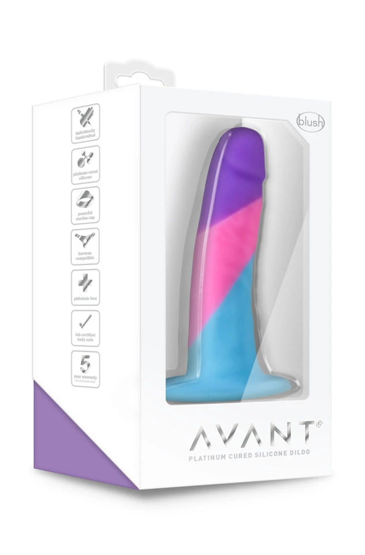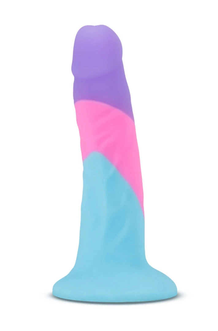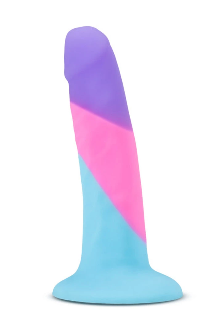 Vision of Love Silicone Dildo is a beautiful mix of blue, pink and purple. Great beginner dildo or anal play, One of the best pegging dildo  Vision of Love Silicone dildo is slim, petite, and comfortable. Made of body safe, platinum cured silicone. This silicone dildo is non-porous and easy to clean. Harness compatible. The suction cup base will stick to almost any smooth, flat, completely clean, non-porous surface.