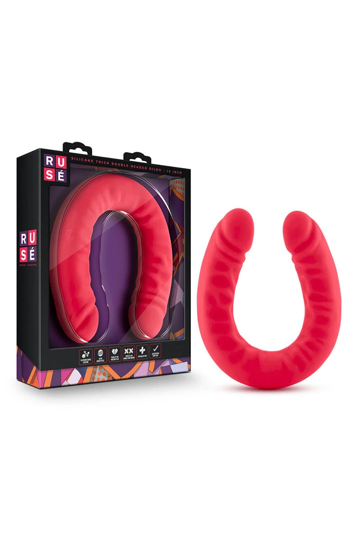 Feeling adventurous? The Ruse 18″ Double Sided Dildo is U-shaped, holds a curve, and is loaded with creative possibilities. Use it alone as a penetrative toy with added reach and let the curve guide its way to your G spot. Or go deep and hard into double penetration with yourself or a play partner! Made of 100% platinum cured silicone means it is body safe, nonporous, and easy to clean.