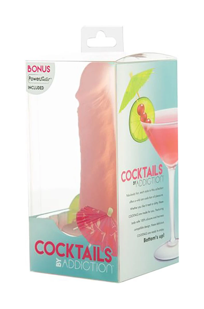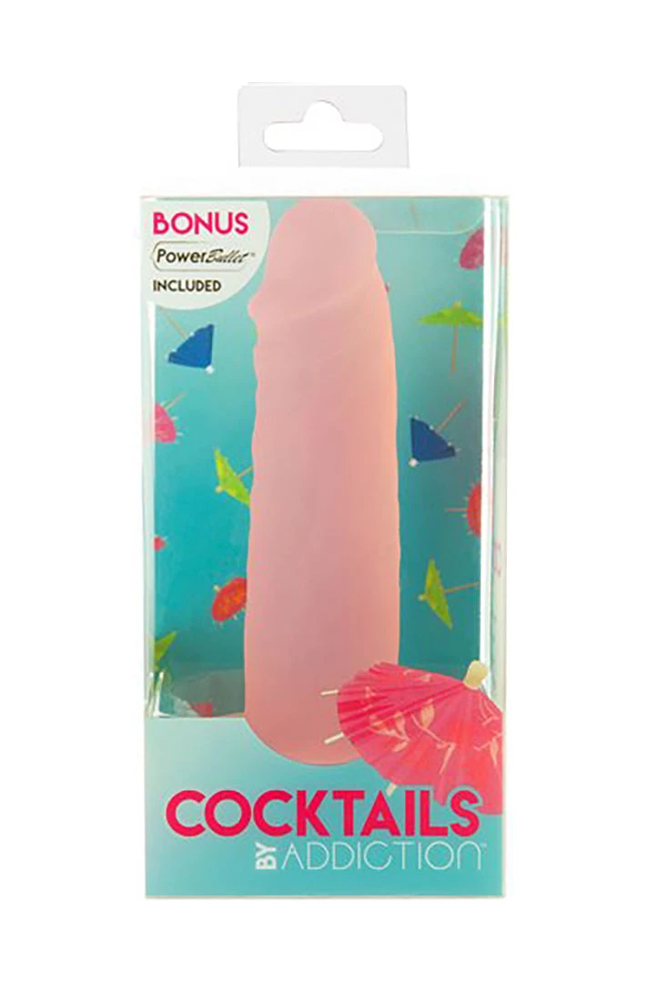 Addiction Peach Bellini Cocktails 5.5 inch Silicone Dildo is just in time for hot girl summer. This deliciously tropical treat is 100% silicone, phthalate and latex free, and completely body safe. Immerse yourself with island vibes as you enjoy a whole new experience of pleasure by sticking it to any surface by the strong suction base or attach to almost any harness with ease. Each cocktail is 5.5 inches long and has an insertable length of 5.25 inches. Also, receive a bonus Power Bullet included in your Cocktails box! ooo vibrating fun! Do not use silicone toys with silicone lubricants. Shop our selection of water based lubricants and toy cleaners.Â