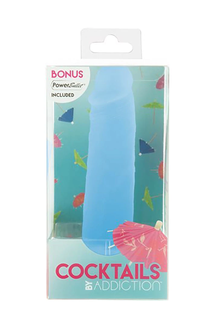 Addiction Blue LagoonCocktails 5.5 inch Silicone Dildo is just in time for hot girl summer. This deliciously tropical treat is 100% silicone, phthalate and latex free, and completely body safe. Immerse yourself with island vibes as you enjoy a whole new experience of pleasure by sticking it to any surface by the strong suction base or attach to almost any harness with ease. Each cocktail is 5.5 inches long and has an insertable length of 5.25 inches. Also, receive a bonus Power Bullet included in your Cocktails box! ooo vibrating fun! Do not use silicone toys with silicone lubricants. Shop our selection of water based lubricants and toy cleaners.Â