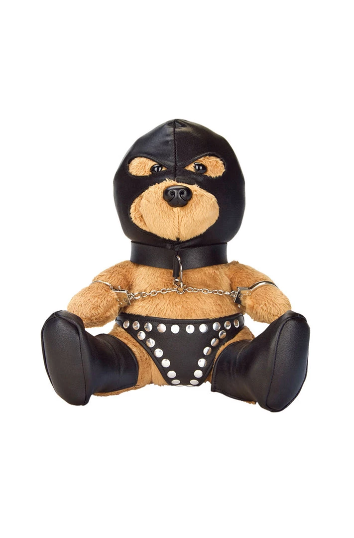 Sal Slave Bondage Teddy Bear is always eager to please his master, decked out in studded faux leather underwear, boots and mask! This adorable plush bear is perfect for bondage fans as a new addition to a bedroom or dungeon, or as a great gift to share a love of BDSM in a very cute way. Perfect cuddle buddy for your babygirl for Valentines Day.