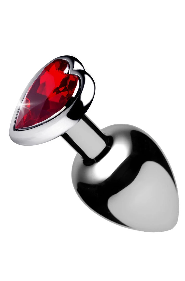 Spark your desire for decadent anal play with this beautiful Booty Sparks plug! Featuring a smooth metal finish in lightweight aluminum, it features a sweet heart shaped gem in a deep crimson red. The slim shaft will keep it from slipping out of place even during vigorous play. You will want to show off your new sparkling booty as you bend over and tease your lover. The nickel free aluminum alloy is nicely weighted and temperature sensitive for the perfect amount of sensation. When play is over, the non-porous material will clean easily without harboring any harmful bacteria. Make that booty sparkle!