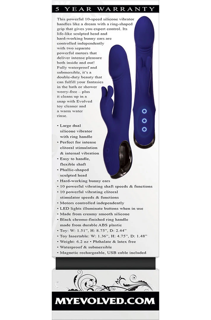 This powerful 10-speed silicone vibrator handles like a dream with a ring-shaped grip that gives you expert control. Its life-like sculpted head and hard-working bunny ears are controlled independently with two separate powerful motors that delivers intense pleasure both inside and out! Fully waterproof and submersible, it’s a double-duty beauty that can fulfill your fantasies in the bath or shower worry-free.