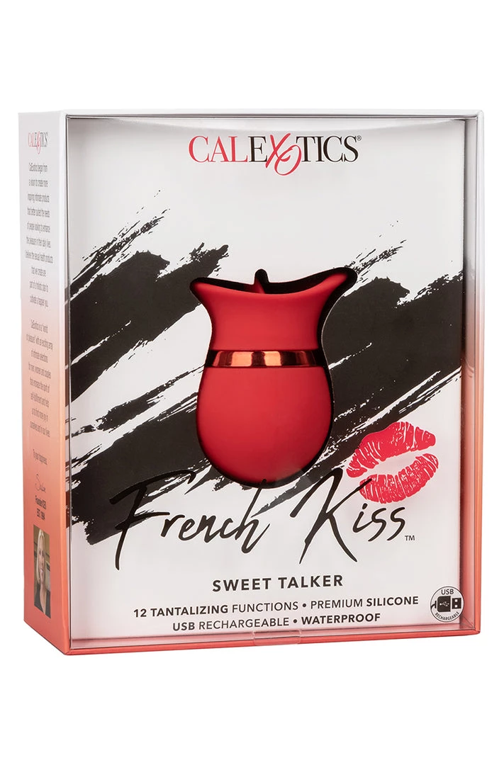 The sensual French Kissâ„¢ Sweet Talker is ready to slip into your purse or overnight bag for orgasmic pleasure on-the-go. The compact massager fits just between your fingers to deliver powerful flickering pleasure with 12 sensual functions of fluttering vibrations through the tongue-like tip.