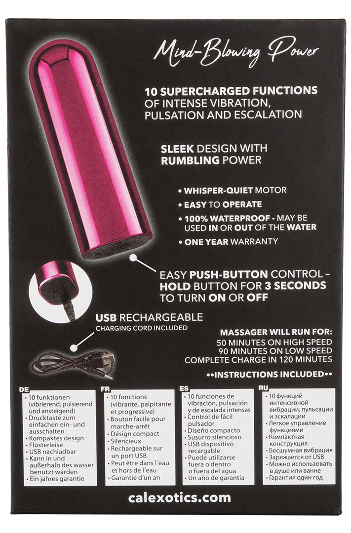 The shining Glam™ bullet in pink is a super-charged power bullet packed with 10 functions of high-intensity vibration. Grab the travel ready pleasure toy and slip it into your purse or overnight back to indulge in passion playtime wherever your travels take you.