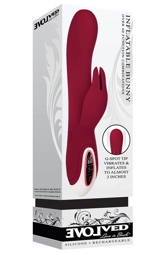 Enjoy the satisfaction of girth without the awkward entry of a large tip by indulging in an inflatable silicone toy! The curved shaft reaches your G-spot effortlessly and then the tip inflates gently to five different levels according to your pleasure, stimulating that elusive erogenous zone with an extraordinary sensation. Use the quick release button anytime to instantly deflate. All motors work independently, with eight vibrating speeds and functions in the shaft and hard-working bunny ears, sending you right over the edge!