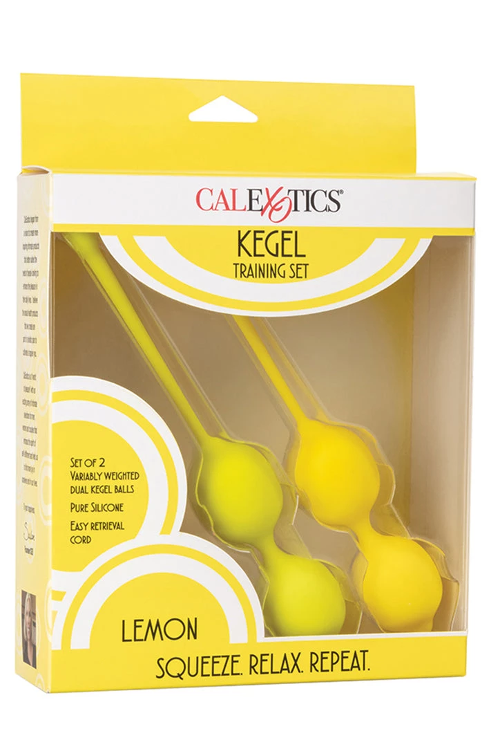 Revitalize and strengthen love muscles with the unique 2-piece Lemon Kegel Training Set. Give your pelvic floor muscles the training they have been craving with 6 gradually weighted exercisers to gently increase exercise intensity and sexual pleasure. The 2-piece set includes a 60 g and 100 g and a full workout routine. While the dual weights work to increase sexual arousal, the gentle tone and strengthen pelvic muscles. By working those key love muscles, you reduced the risk of pelvic floor disorders or incontinence, while increasing erotic pleasure. The single kegel weights are made from a hygienically superior silicone. This body safe material is unscented and phthalate free to keep your most sensitive spots happy and healthy.
