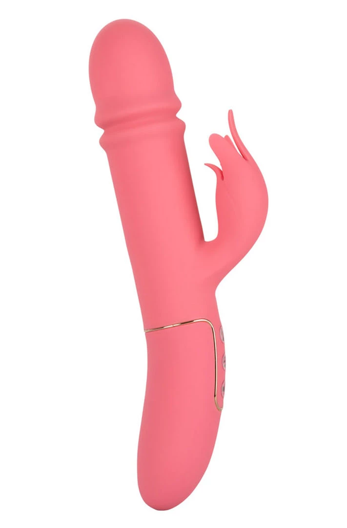 Dial in to exactly what you desire with the power 7 pulsation, vibration and escalation functions and 4 independently controlled thrusting functions. Flicker to your favorite setting with the easy touch control buttons for frustration free control. The silky smooth silicone and gold plated decor base make this vibrator a stylish addition to any pleasure toy box.