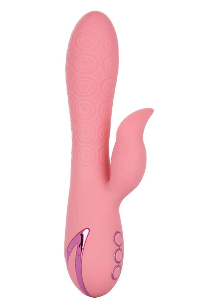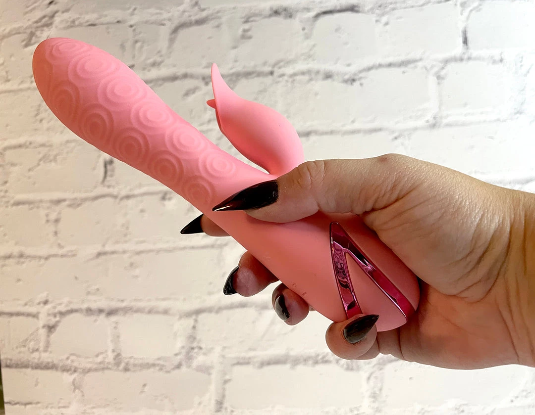• Powerful rotating massager plus vibrating contoured teasing stimulator