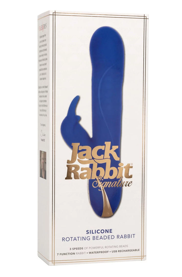 After over 30 years of pleasure, the Jack Rabbit has crafted their most luxurious vibrator yet. The Silicone Rotating Beaded Rabbit is a premium silicone vibe with 7 functions of vibration and 3 shaft rotation speeds . The ravishing rabbit flicker to the rhythm of 7 thrilling functions vibration to tease, please and tantalize; Get playful with deeply gratifying vibration, escalation and pulsation functions for a truly indulgent pleasure experience.