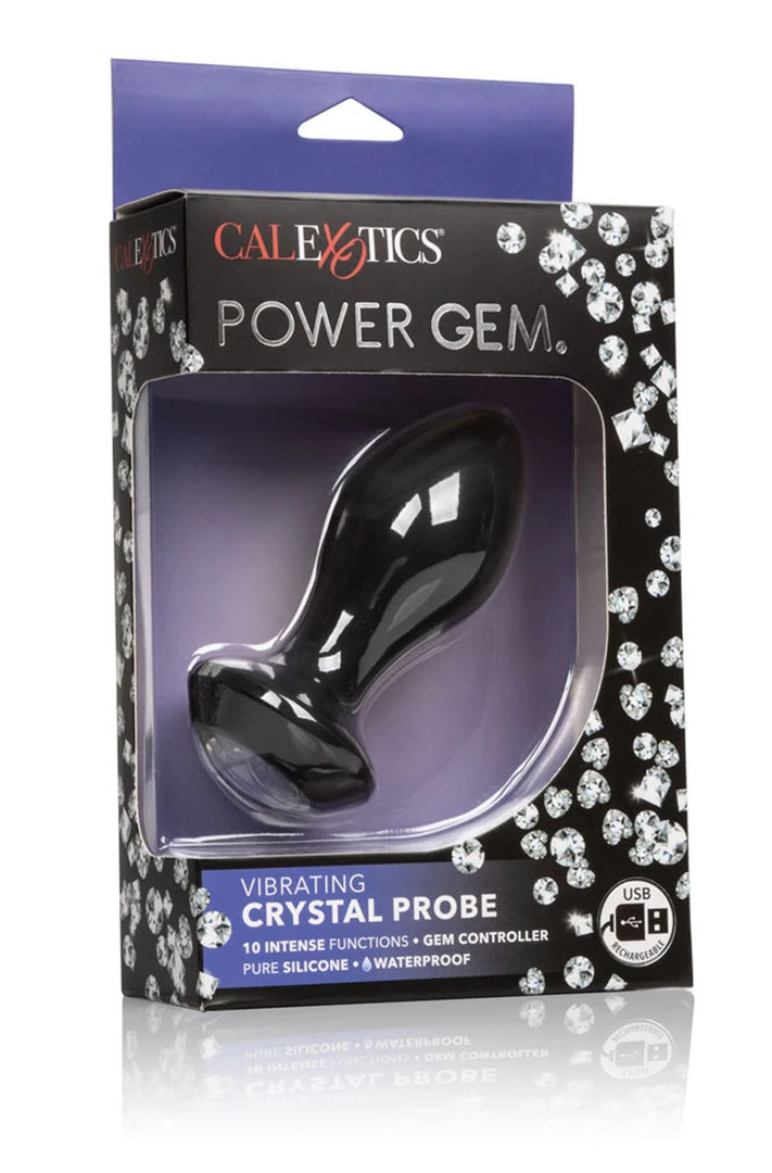 The Power Gem® Vibrating Crystal Probe is a dazzling, flexible silicone probe created to ease you into thrilling anal pleasure. The pliable, ergonomic design and powerful vibe motors allow this probe to flex with your movements while delivering intense vibrations. Indulge in personalized pleasure while the sleek probe pulsates with 10 vivacious vibration, passionate pulsation and erotic escalation. Control this variety of orgasmic options with the easy-touch gemstone button.