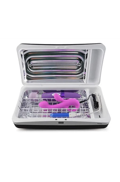 UVEE Home Play Large Toy Cleaner will eliminate 99.9% of all bacteria in just 10 minutes using the UV-C patent pending sanitizing process. Effective against bacteria, yeast, E.coli, Salmonella, strep, pseudomonas and other microorganisms. Child proof locking system to help keep products out of the wrong hands. Three USB charging ports plus an additional outlet in the back to allow for non-USB devices. Customizable interior dividers large enough to hold all of the most popular toys and keep them from touching each other during cleaning, charging and/or storing. Designed to be discreet and easily left out on a night stand. Includes special sensors to automatically start the cleaning process once a product is placed in the chamber and the lid is shut. Dimensions: 16.5″ x 8.75″ x 5″.