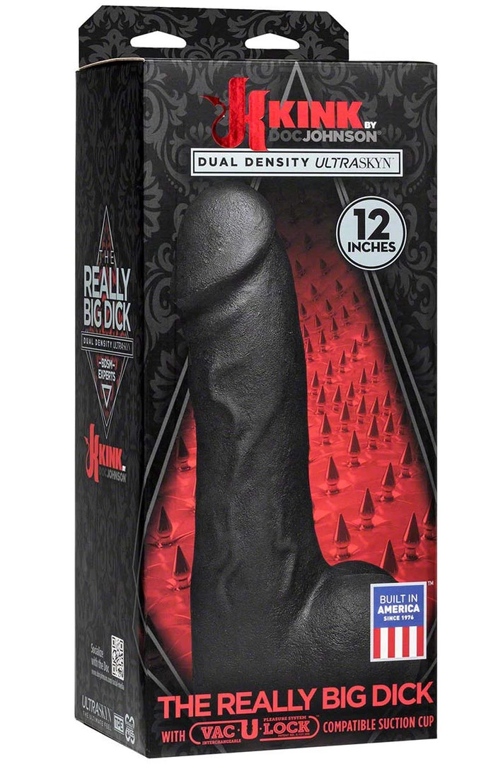 The 12″ Big Black Dildo. Play with it. Pound with it. Worship it. It’s the Perfect Cock. From lifelike dual density ULTRASKYNâ„¢ to the beautifully molded veins and contours, every pleasurable product feature that we’ve perfected converges in Kink by Doc Johnson’s Perfect Cocks. The soft pliable exterior warms to the touch and yields to a firm inner core as it slides in and teases every hole. Squeezable balls provide a firm grip and safe base for use by hand, and the 10.5-inch Perfect Cock’s Vac-U-Lockâ„¢ compatibility makes it easy to stay satisfie– pop it on to the included suction cup, or your favorite Vac-U-Lockâ„¢ harness or accessory. Kink by Doc Johnson is an exciting collaboration with Kink.com to create a collection of high-quality authentic fetish items suitable for long-term practitioners and new initiates alike.