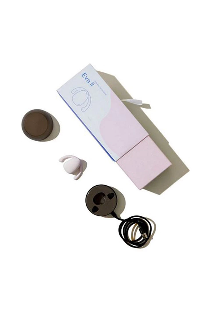 Eva 2 Quartz from Dame Products. With flexible wings that tuck under the labia while Eva II sits on top, you can have clitoral stimulation during penetrative sex. Eva II is smaller, lighter, and simple to use plus, it is totally waterproof, and comes with a sleek charging base/travel case to boot. How it works: no hands, no hassle. It is no secret that using vibrators can enhance pleasure, but holding a toy in place can also be distracting, and even counter productive. Unlike vibrating penis rings, Eva II is worn by the woman, leaving your hands free to support your weight, move around, and focus on intimacy. More control over your experience. We designed Eva Its flexible wings to nestle under your labia for a secure, comfortable fit. Even in adventurous positions, Eva II only needs the help of a single finger to stay secure. Partners optional. Partners optional. Eva II is great for all kinds of play. Use it on your own, or any time you might want your hands free. However you want to enjoy Eva is the right way to use it! Charging base. Medical grade silicone. Phthalate free. Waterproof. Made to fit. Three speeds. Travel mode. Whisper quiet. Partner optional.