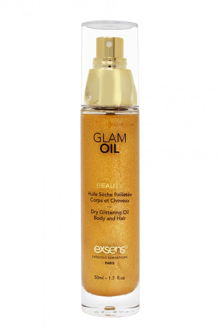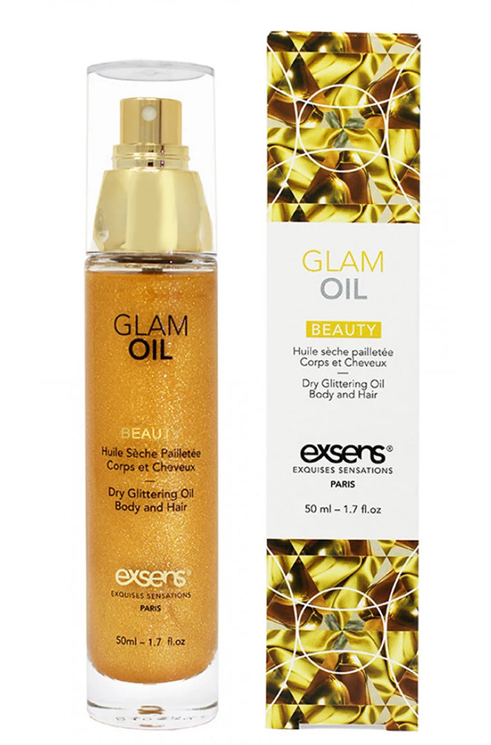Gold Glitter Glam Oil is a glittery body oil that nourishes and softens while giving the body and hair an alluring glow. Sweet almond oil provides a delicious scent. Great for all skin types, the illuminating and beautifying effect of this luscious oil will captivate with its sexy glow.
