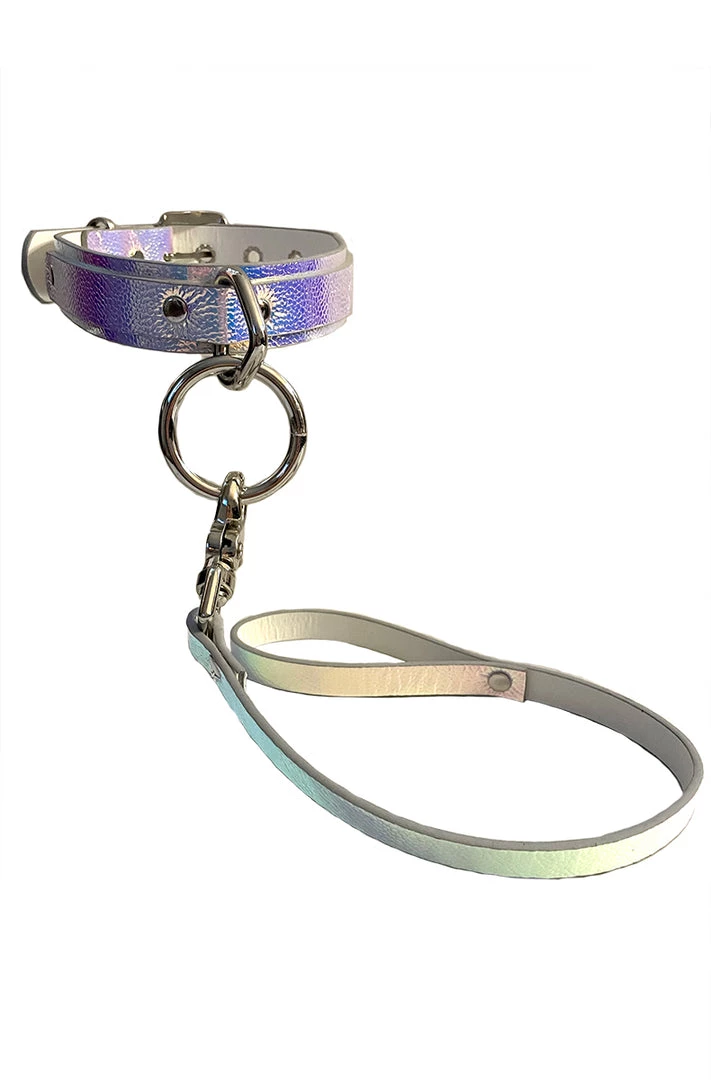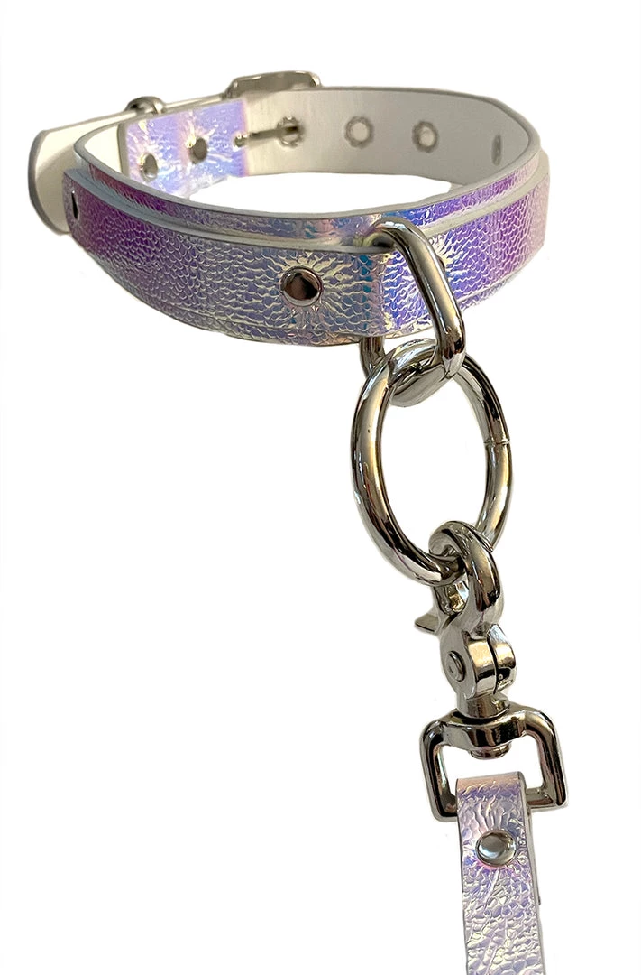 Walk your kitten with this holographic collar and leash. Made extra strong to hold the most aggressive of pets. Handcrafted in the USA