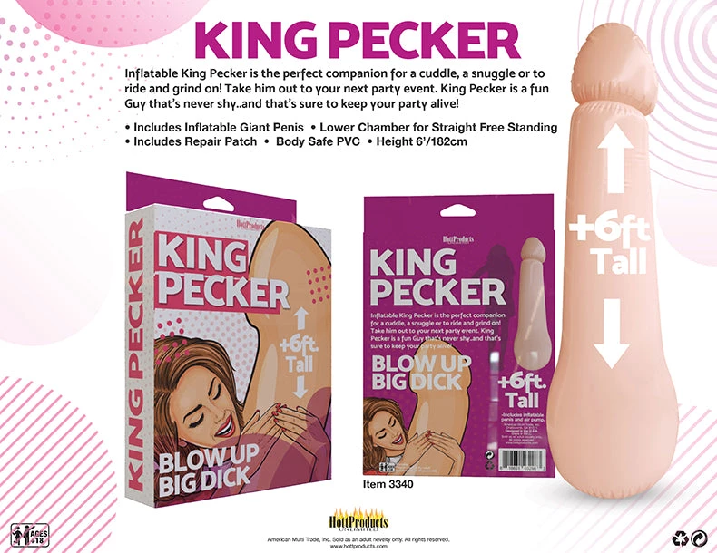 Inflatable King Pecker is the perfect companion for a cuddle, a snuggle or to ride and grind on! Take him out to your next party event. King Pecker is a fun Guy that’s never shy..and that’s sure to keep your party alive! Great for a bachelorette party, birthday party or divorce party. Great gag gift for your next pool.