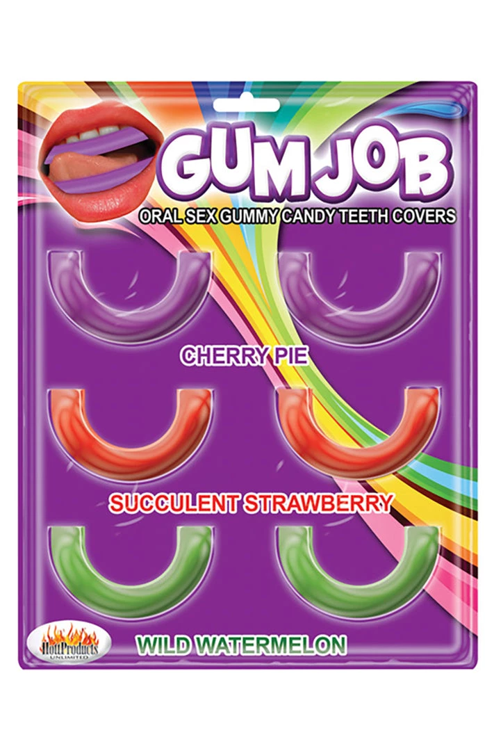 Gum Job Oral Sex Candy Teeth Covers 6 Pack. Give your partner the ultimate blow job with Gum Job Oral Sex Gummy Candy Teeth Covers! These great tasting candy teeth covers are easy to fit over any size teeth and taste orally delicious! With flavors including Cherry Pie, Wild Watermelon and Succulent Strawberry! You will be sure to bring your partner to their maximum O when you wrap your lips around him in these sexy candy oral treats!