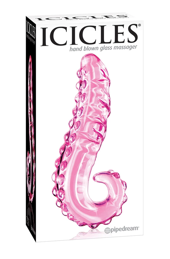 Icicles No. 24 Hand Blown Glass Massager is an elegant, upscale, and handcrafted with amazing attention to detail, this luxurious line of glass massagers will leave you breathless. Each hand-blown Icicle glass wand is sleek, unique, and made to play hard. The hypoallergenic glass is nonporous and body safe, and when cared for properly, is designed to last a lifetime. Run the wand under warm water or place it in the microwave to heat things up. Chill it under cold water or put it in the freezer for a cool sensation. Since glass is nonporous, cleanup is a snap. Use Pipedream Toy Cleaner and warm water, or throw it in the dishwasher for a worry-free wash after the fun.