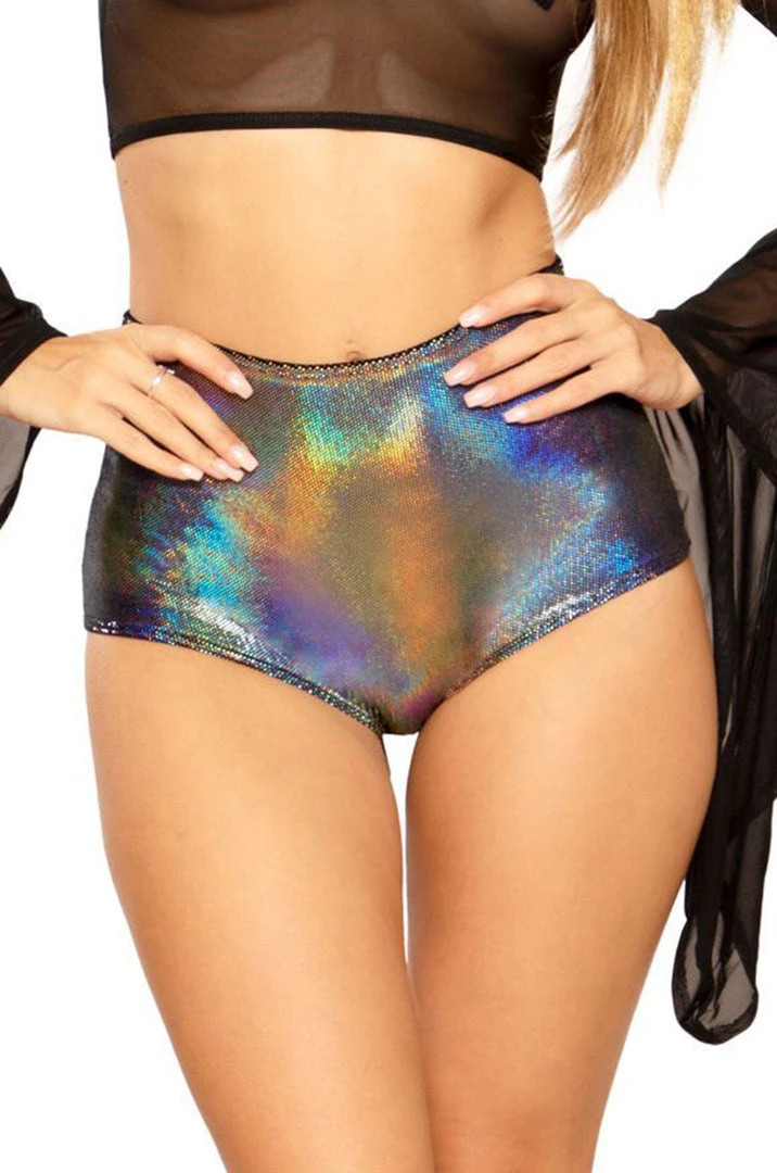 High waisted, holographic and velvety shorts with a a cheeky cut back. Invisible zipper for the best possible fit. Made in the USA By J Valentine.