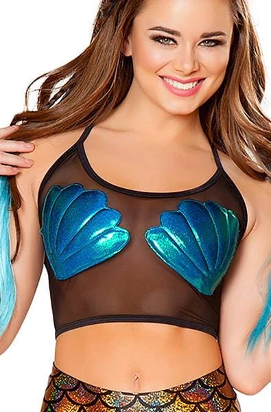 Mesh tank with mermaid sea shells.ย Made in the USA By J Valentine.