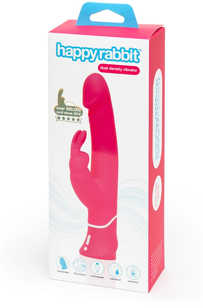 Happy Rabbit Realistic Pink Rabbit Vibratorย is made from soft liquid silicone with a thick realistic shaft.ย Separate vibrating motors in the shaft with 12 vibrating functions. The rabbit ears have 3 vibration speeds.ย ย USB rechargeable this pinkย vibrator will give hours of fun without the batteries. 100% waterproof for shower fun and easy cleaning after every use. Plus a travel lock to prevent any vibrating travel mishaps.ย