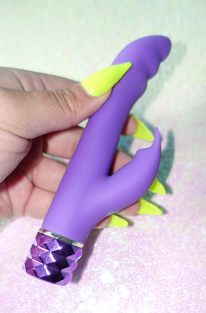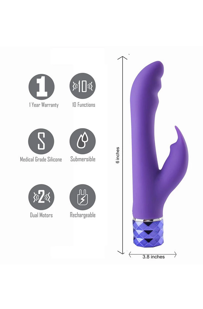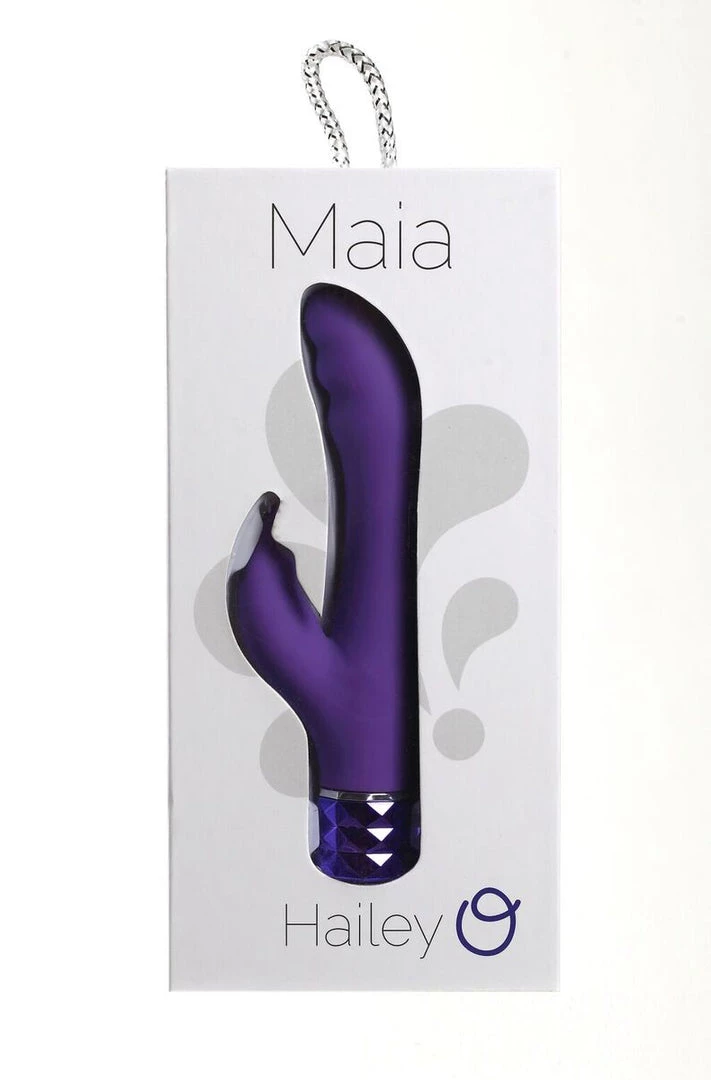 Rechargeable Silicone Rabbit Vibe Hailey Neon Purple from Maia Toys. Hailey is here for you, when extended pleasure and power matter most. Featuring over ten speed settings on two ultra powerful motors, Hailey’s always just the way you like her. Constructed of 100% medical grade silicone and ABS plastic for your safety, plus Maia Toys exclusive extra long rechargeable technology. Her diamond cut handle cap ensures the perfect grip every time. When you grab onto Hailey, she will have you seeing stars.
