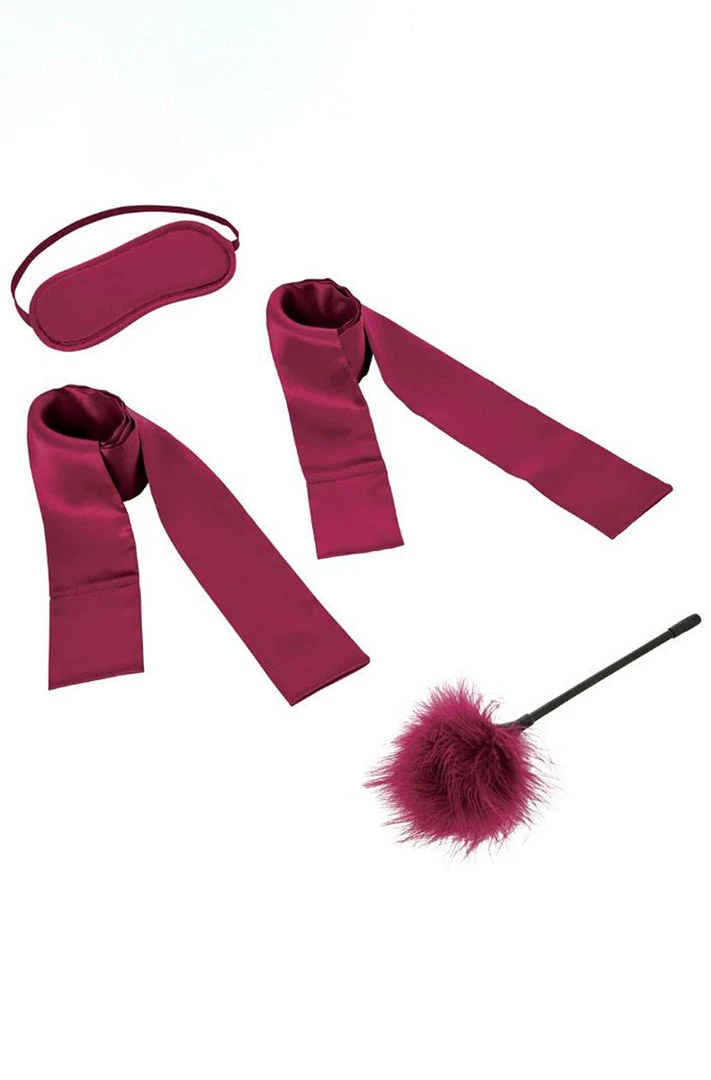 The Satin Bondage Set comes in a seductive burgundy color that looks beautiful on all skin tones. Tempt and seduce your lover by using the Satin Blindfold, Feather Tickler, and Satin Tethers to experiment with power exchanges and sensation play. Tie your lover to your bedpost, or around any other surface by creating the cuff with the easy the silky restraints, the blindfold comes with a durable lingerie strap that will allow your partner to experience total blindness.