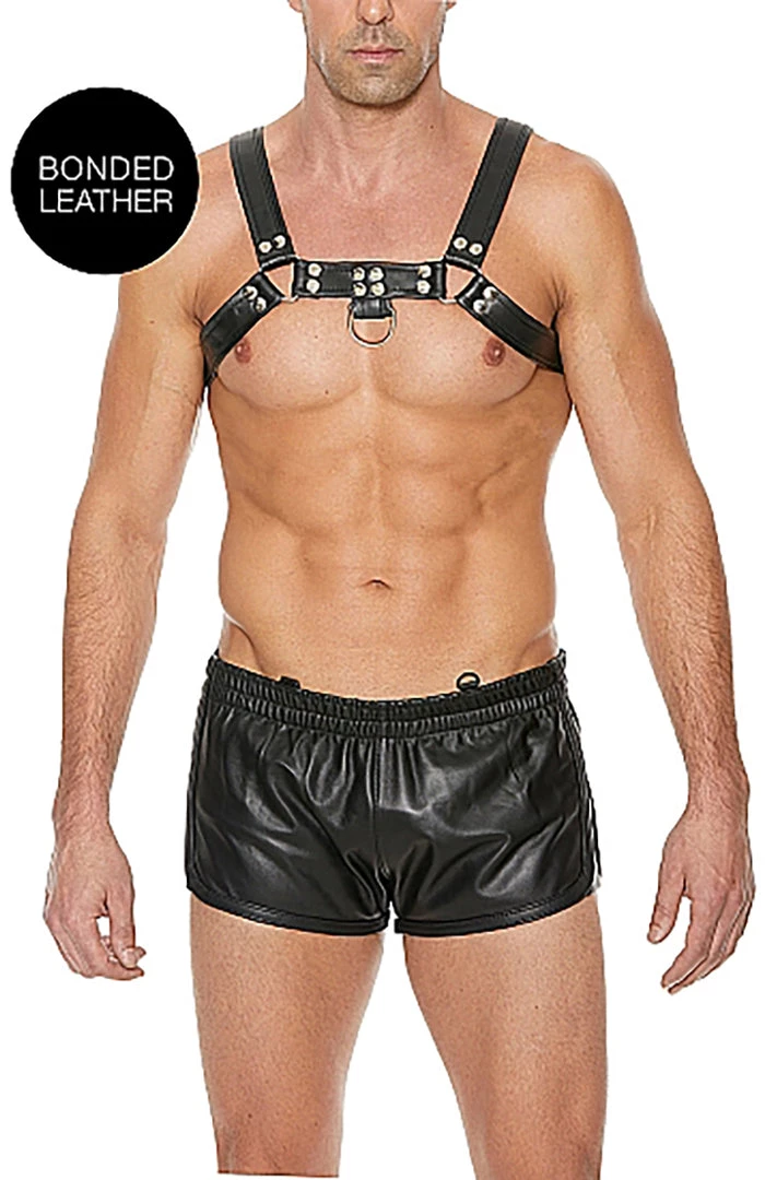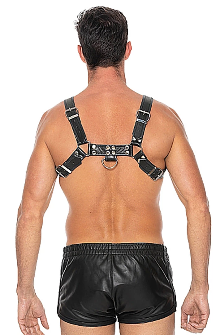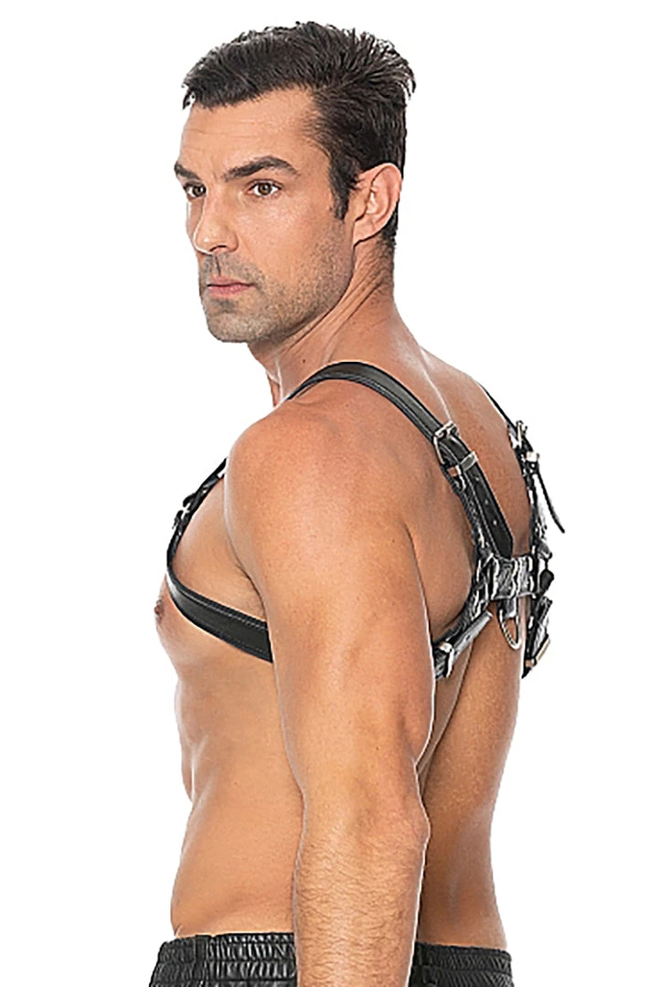 This handsome harness combines bonded leather and stainless-steel detail, to wrap around your chest and back, accentuating your curves and edges. The two O-rings, one on the front and the back, make it easy to attach various BDSM accessories and take your bondage play to the next level. Buckles on the sides of the torso and on each shoulder allow you to adjust this harness to the perfect fit. Wear it on bare skin and instantly capture admiring eyes as they showcase your strength. Wear it over your clothes and let people know what kind of fun you’re up for! For even an even better fit, the adjustable harness comes in 2 sizes: S/M and L/XL.