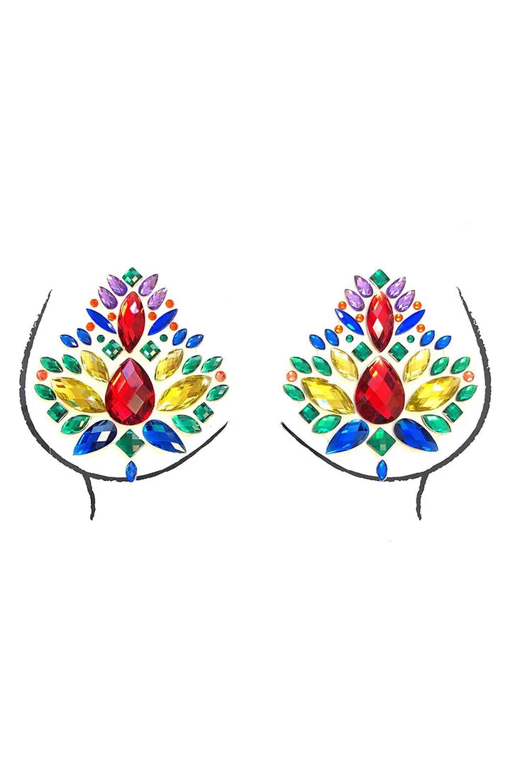Youâll have no trouble letting it go and harnessing your Rainbow Queen in these sparkly multi colored  crystal Nipztix pasties. Perfect for pride or any rainbow unicorn!