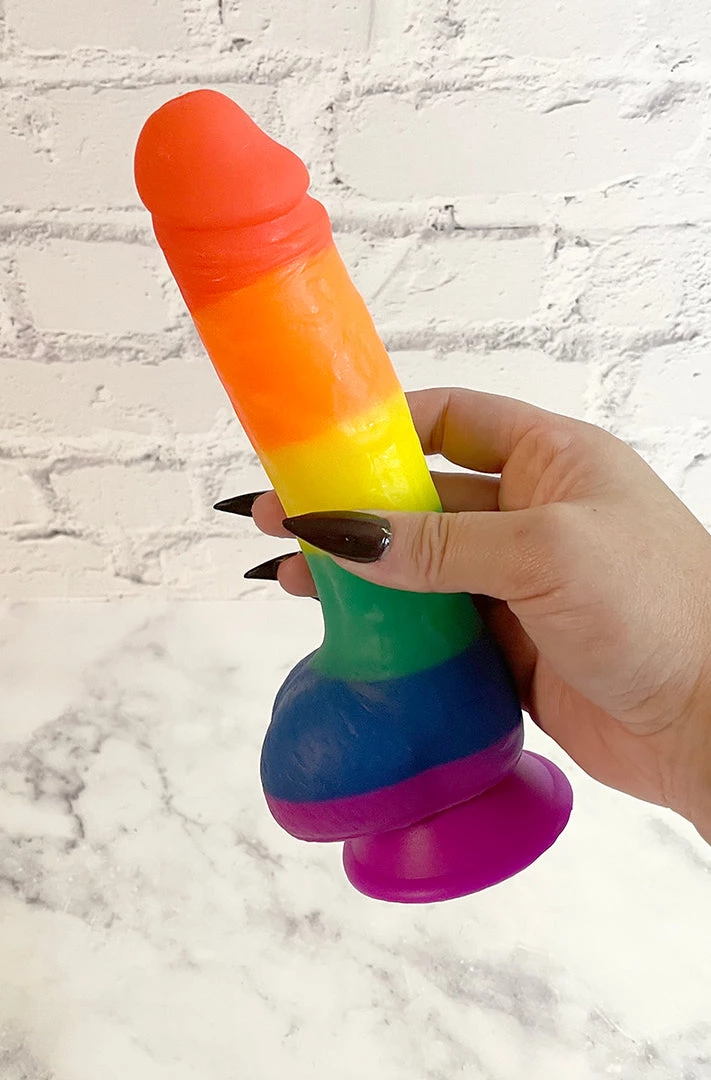 Colours Pride Edition 8 inches Dong Rainbow. Show your true colors with NS Novelties Pride Edition dongs. Inspired by the Pride flag, the rainbow colored dongs are made of superior grade silicone and feature a satin smooth texture and strong suction cup base for versatile play. 8 inches Pride Edition dongs are firm for effortless penetration and non-porous for easy, worry free cleaning. Sexuality comes in many Colours, take Pride in yours. Product dimensions 10 inches by 2.6 inches. Package dimensions 12 inches by 5.1 inches by 2.9 inches. Packaged weight 23.40 ounces. Product material Silicone.