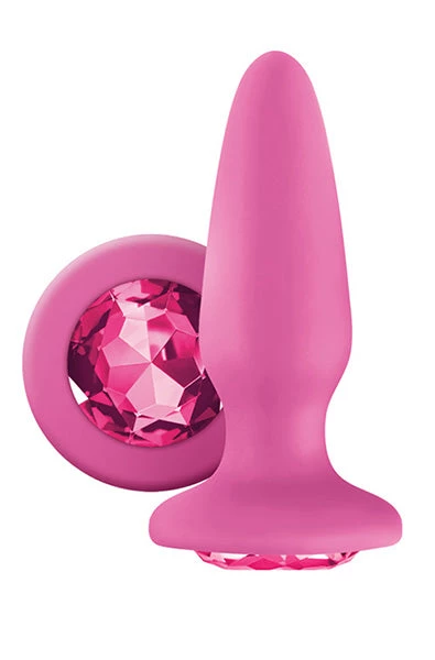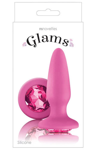 Glams Pink Butt Plug Gem by Tails. Fun, cute and colorful, Glams gem plugs bring a little bling to the bedroom. Made of body safe and silky smooth silicone, Glams feature a tapered butt plug with a vivid, sparkling gem. Available in assorted eye catching colors and suitable with all lubricants, Glams are perfect for those precious moments with a partner or making yourself feel glamorous! Product dimensions 4.1 inches by 2.1 inches. Product material Silicone.