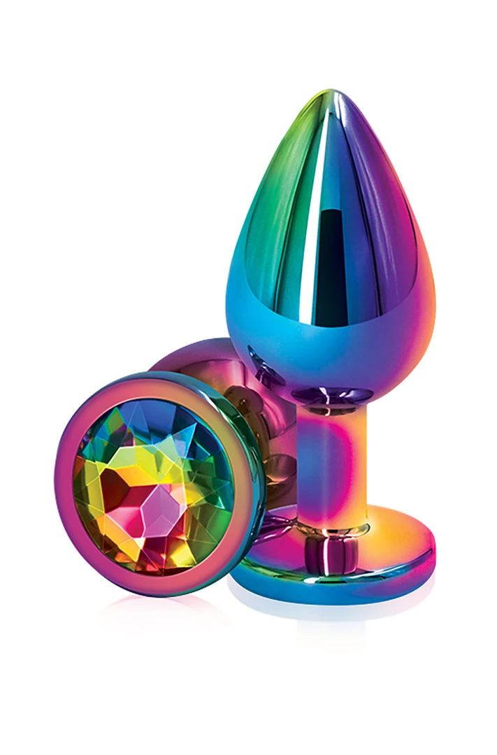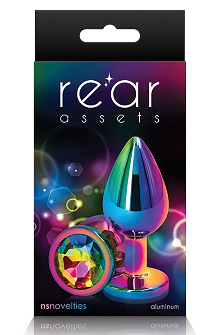 Rear Assets Multicolor Medium Rainbow Butt Plug from NS Novelties.