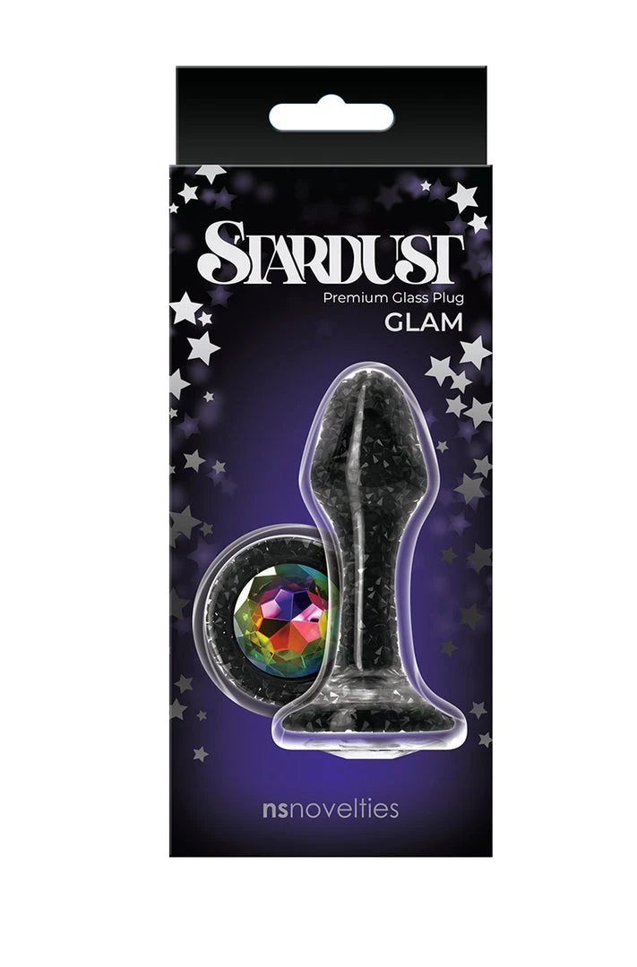 Stardust Glam Black Glass Butt Plug . Experience the cosmic beauty of Stardust butt plugs. Combining colorful crystals and borosilicate glass. The Stardust anal plug collection is perfect for princess in your life. Available in 4 colors. Use with all lubricants. Wish upon a star and make your dreams a reality with these crystal glass butt plugs.