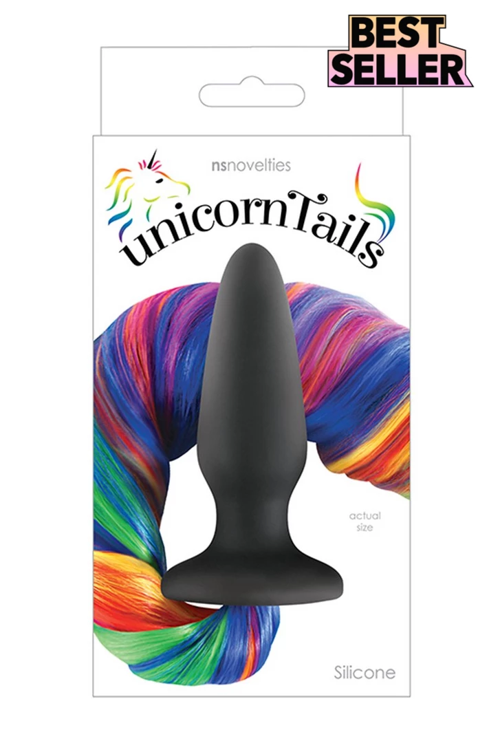 Unicorn Tails Rainbow Butt Plug by Tails. Fun, cute, and colorful, Unicorn Tails bring fantasy to life for hot to trot fillies and horny studs looking to get buck wild in the bedroom. Made of body safe and silky smooth silicone, Unicorn Tails feature a tapered butt plug with an alluring, long and flowing pony tail, guaranteed to inspire role play. Available in assorted eye catching colors, Unicorn Tails are perfect for kinky couples play with a partner or to ride alone into the sunset. Polyester hair easily cleaned with soap and warm water.