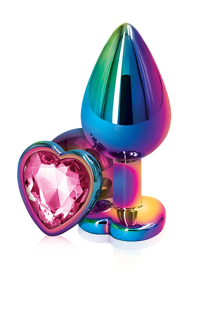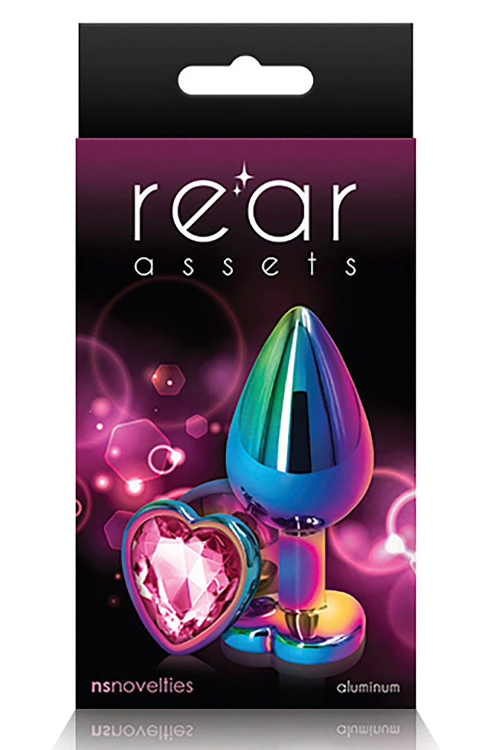 Rear Assets Multicolor Heart Medium Pink Butt Plug from NS Novelties.