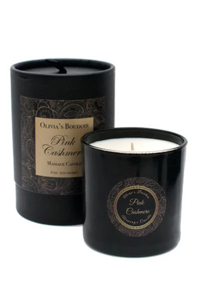 Olivia’s Boudoir Massage Candle Pink Cashmere 6.5 ounces. Massage Candles set the mood with sensual aromas that fill the room. Light my fire! If you have Love and romance in mind, then you have just found the ultimate product to enhance the evening. Indulge your partner with the mesmerizing glow of the candle light, the drizzle of warm oil cascading down the skin and the magical scents make the romantic evening even more memorable. All our Massage Candles are made from pure Soy, Olive and Coconut oils. Each is hand poured. Soy candles burn slowly and cool, making them ideal for massages. Fill the room with romantic layers of jasmine, amber, musk and sandalwood then dip into this alluring candle for a very sexy massage. Allow the candle to melt to the outer edge of the glass. Extinguish the flame, dip into the liquid pool of warm oil and drizzle the warm oil onto your partners skin for a sensual massage. Nutrient rich Soy, Olive and Coconut oils contained in these Body Massage Candles will soften, hydrate and rejuvenate the skin leaving it lightly scented and deeply moisturized. 10 ounces shipping weight. 70 hour burn time, without dipping.