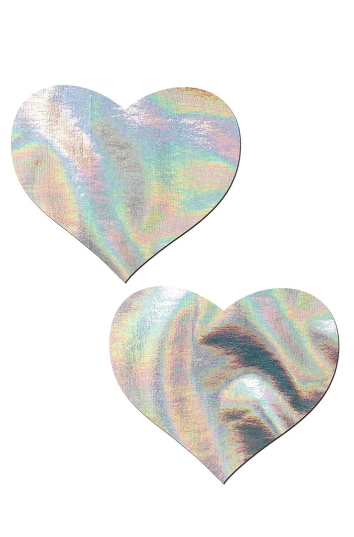 Love: Silver Holographic Heart Nipple Pasties by Pastease® are hand-made in the USA of soft form-fitting material with a holographic sheen that forms seamlessly to curves and resists wrinkling over hardening nipples.