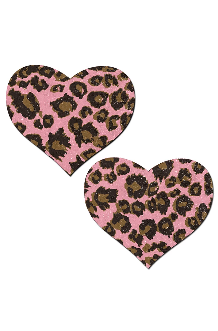 Liquid Baby Pink Heart with Cheetah Print Nipple Pasties by Pastease® are hand-made in the USA of soft form-fitting material that forms seamlessly to curves and resists wrinkling over hardening nipples.