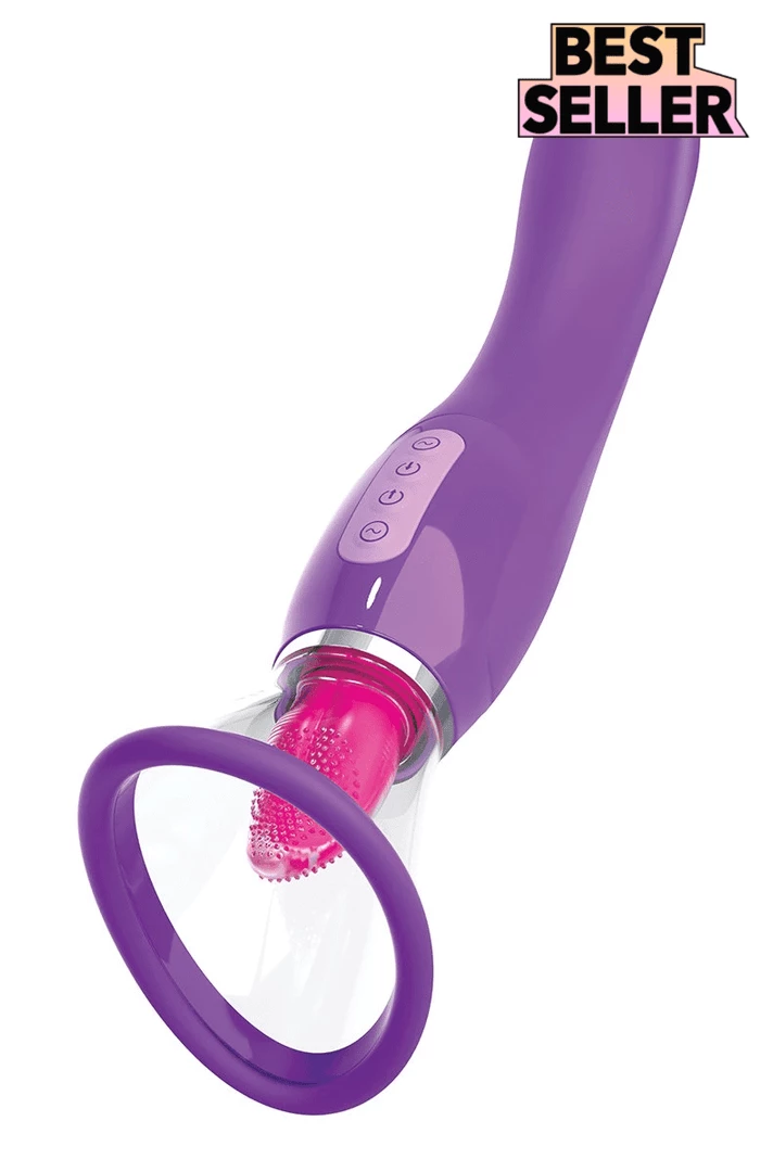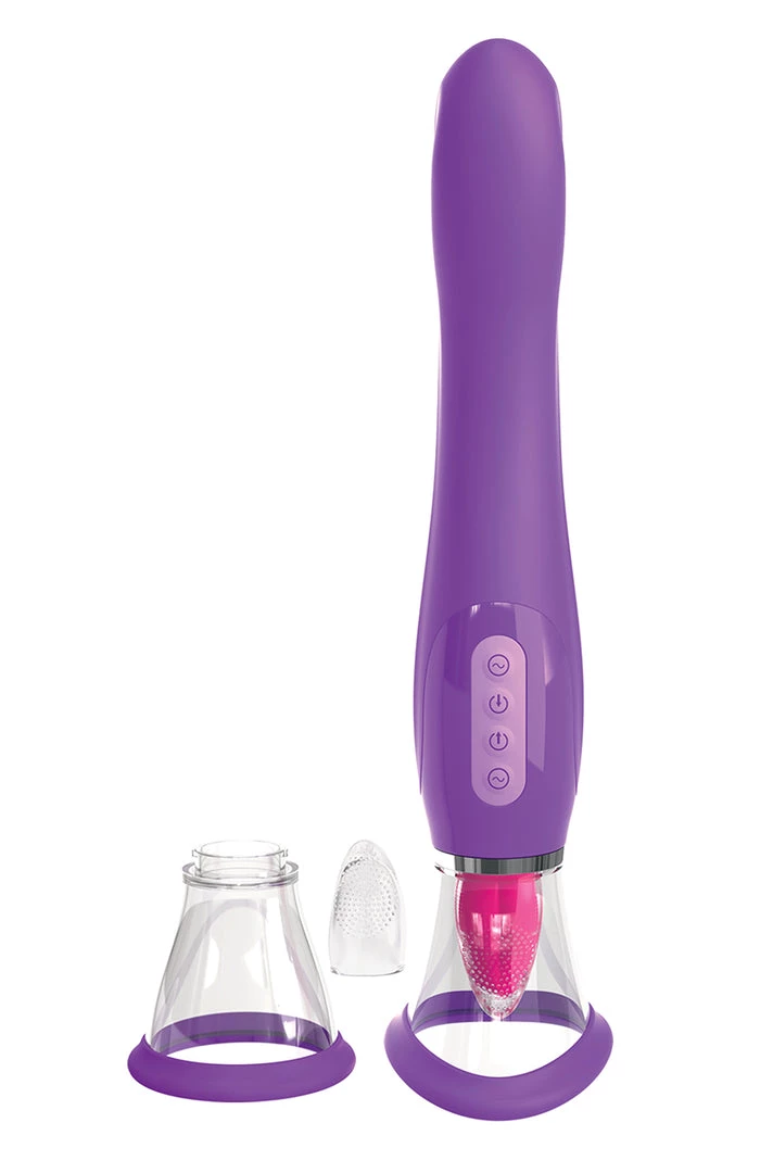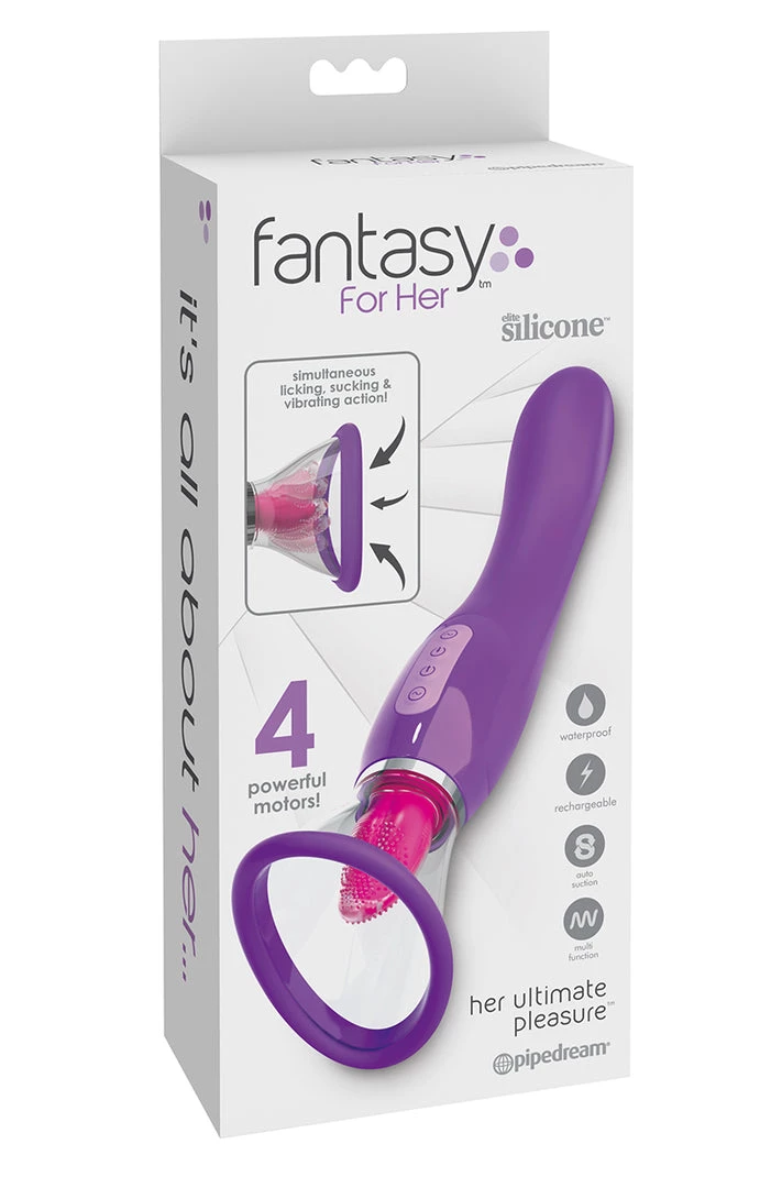 Fantasy For Her Her Ultimate Pleasure from Pipedreams. She always craved oral sex play and wished she could enjoy more often. Now she could. Her Ultimate Pleasure would be able to give her the intimate ecstasy she was looking for. First, she pressed the button to activate the vibration and then traced her body with the pulsating pinpoint pleasure. She knew this was going to feel so good deep inside her later but first she wanted to explore the oral sensations. She placed the oval cone of Her Ultimate Pleasure over her yearning mound. It perfectly cupped her labia, clitoris, and most sensitive lady bits. The pulsing, milking suction was perfectly timed to entice her soft skin, making her tender with sensation. It felt so incredible, as if her very essence was being seduced. She pressed another button and the motorized tongue began lapping her swollen clit. With each press, the smooth tongue sensually teased her sensitive sweet spot. She was enthralled with incredible pleasure as she explored all of the various tongue patterns. ​This was truly the most amazing sensation combination she had ever felt! And then, like a dream, her climax embraced her with breathless trembles. Her Ultimate Pleasure made her sexual fantasy come true. Operating instructions: Suction, Tongue, and Vibration can be used simultaneously or independently. Tongue Power On/Off: press the tongue power button to initiate tongue motion. Press the power button to cycle through 7 tongue motion patterns. Press and hold to turn off. Vibration Power On/Off: Press the vibration power button to initiate vibration. Press the power button to cycle through 10 patterns of vibration. Press and hold to turn off. Suction Power On/Off: Locate the convenient release button that can be used to pulse or stop suction. Press and hold the suction power button to initiate suction. Press and hold to turn off suction. Made using Silicone and ABS plastic.