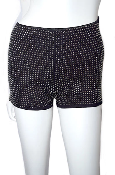 High waist shorts with all over silver rhinestones. Metal zipper on the side.