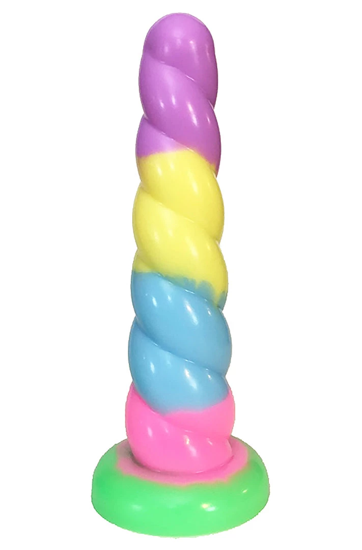 The Pastel rainbow unicorn is that mystical creature that only exist in your dreams and if you blink you might miss her. Her beauty is indescribable. Just a look at her and you might scream in ecstasy. We went off into the deepest darkest works to spot this creature and steal her horn. The pastel rainbow unicorn dildo is that piece of your unfilled fantasy that have come out to play scream at you from your bedside drawer. Use the unicorn dildo alone or in a strap on of your choice. Its flat base makes it easy to ride all night long. Lots of twist for extra riding enjoyment.Â