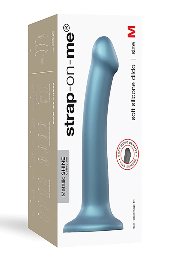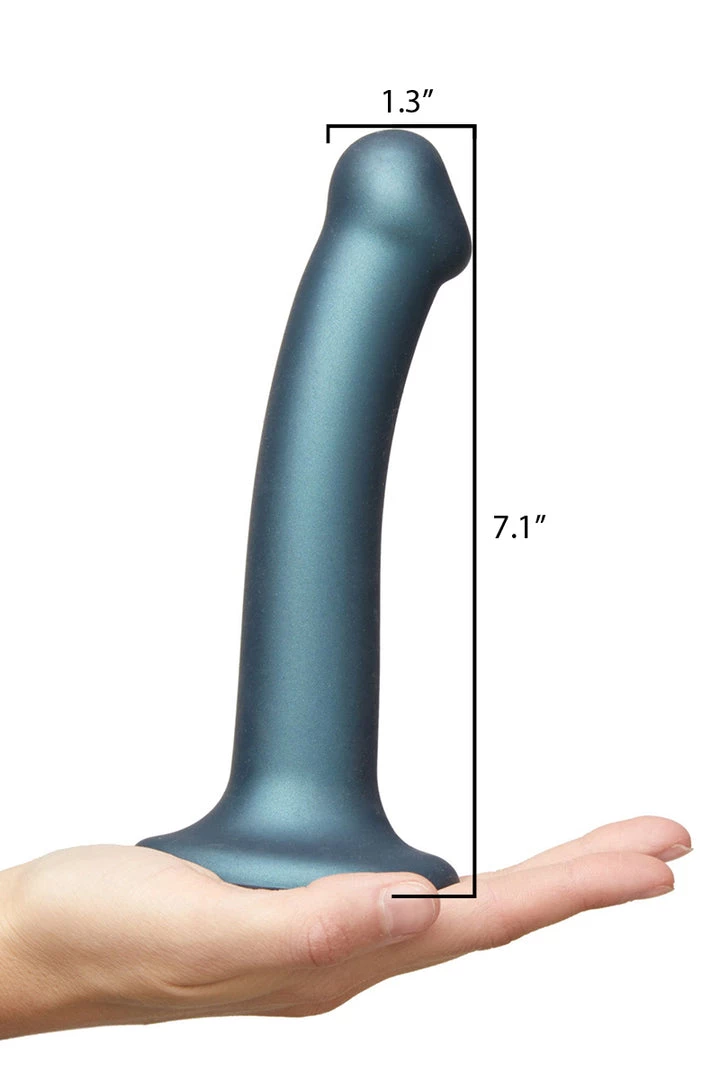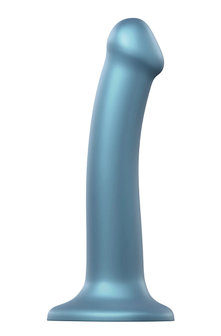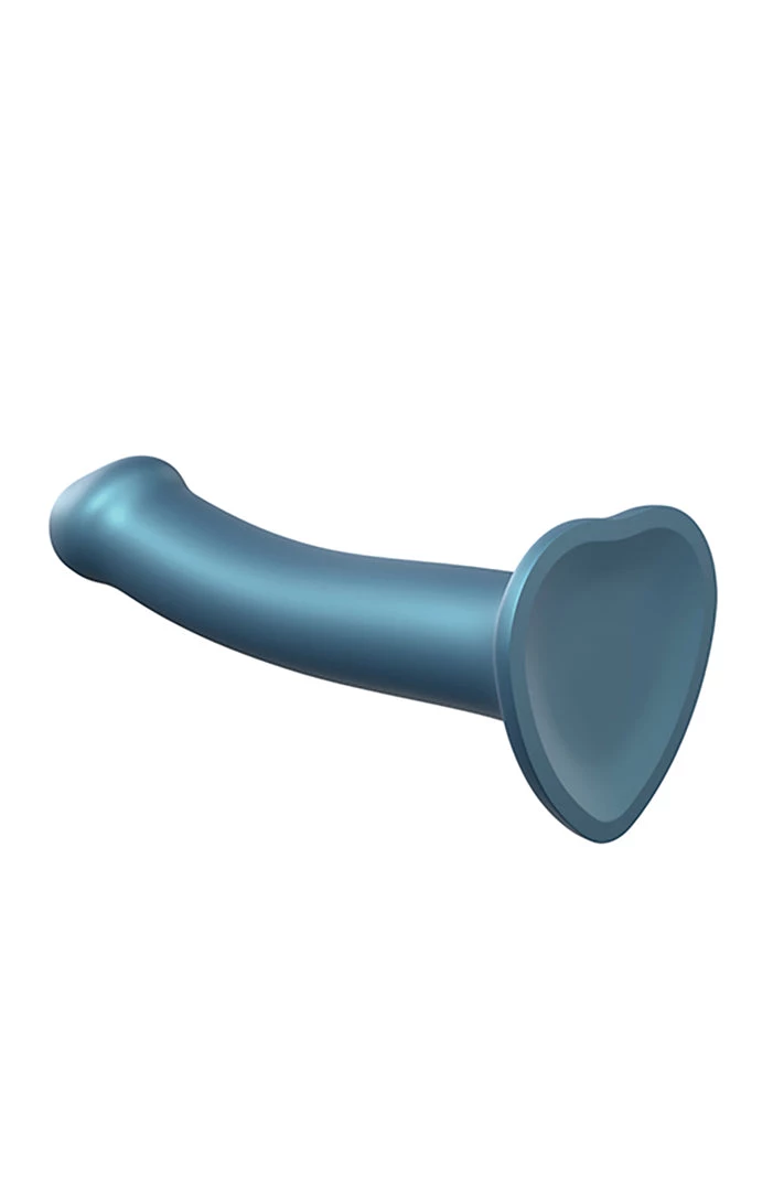ย Blue Metallic Shine Flexible Silicone Dildo has a sleek ergonomic design and a rich metallic color. Poured from single-density cast silicone this dildo is phthalate-free, 100%ย hypoallergenic and completely body safe. 100% waterproof with a super cute heart shape suction cup. Harness compatible and anal safe makes it a prefect choice for pegging. Mono-density and soft touch silicone is flexible.ย