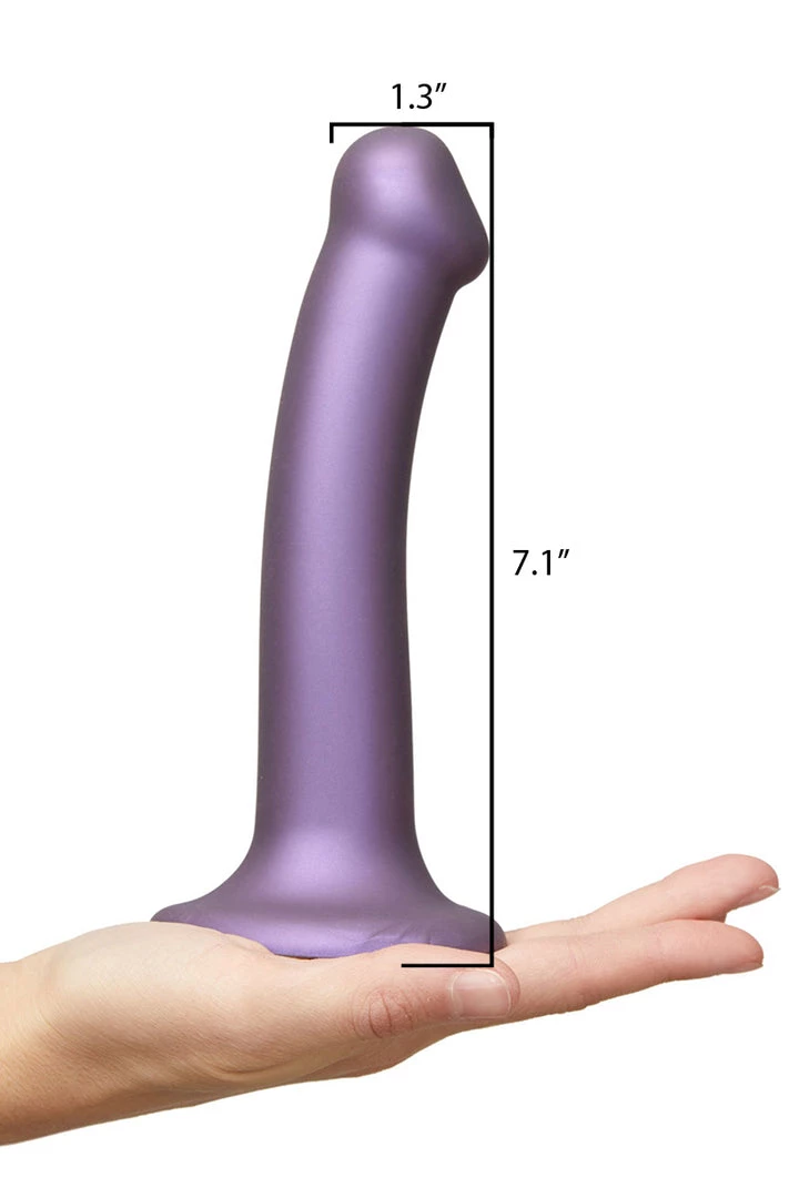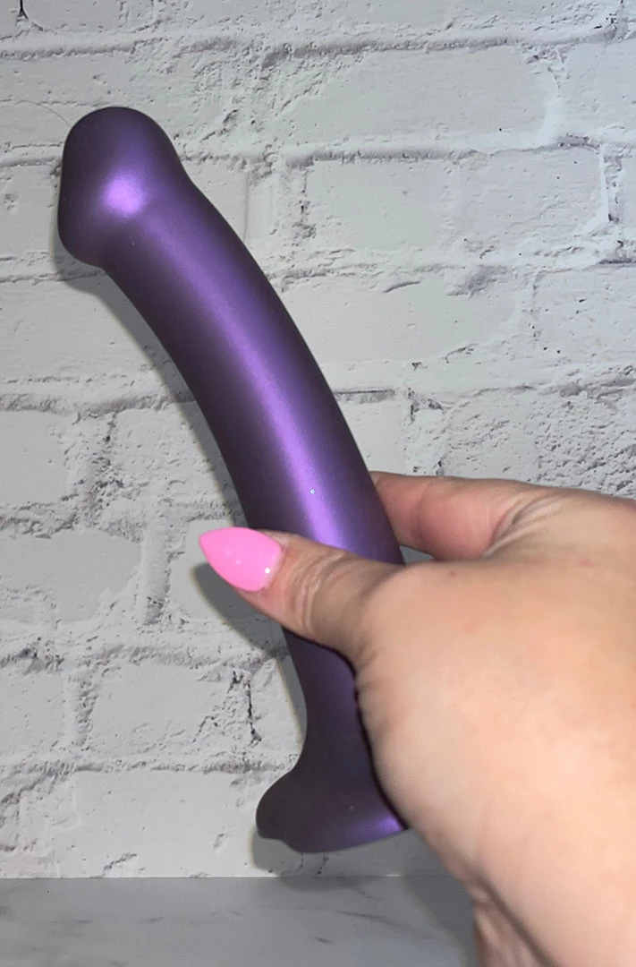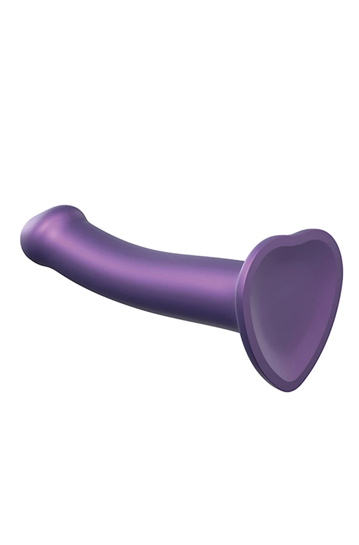 Purpleย Metallic Flexible Silicone Dildo has a sleek ergonomic design and a rich metallic color. Poured from single-density cast silicone this dildo is phthalate-free, 100%ย hypoallergenic and completely body safe. 100% waterproof with a super cute heart shape suction cup. Harness compatible and anal safe makes it a prefect choice for pegging. Mono-density and soft touch silicone is flexible.ย