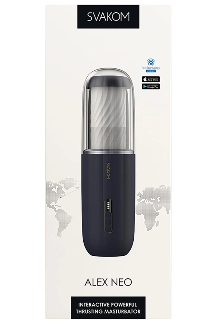 The Alex Neo App Controlled Thrusting Male Masturbator is the future of male masturbators! Control it with an app on your smart phone from anywhere in the world. Just download the Svakom Feel Connect app from the App Store. Compatible with iOS and Android devices. Connect your thrusting masturbator via blue tooth and you are ready to explore.ย