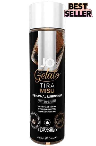 System JO Gelato Personal Lubricant Water Based Tiramisu. Gelato is a flavored water based personal lubricant designed to enhance foreplay and comfort of intimacy. Formulated using a pure place sourced glycerin, this product provides a comfortable glide using quality ingredients. Each flavor profile is created around a base that is sugar, paraben and propylene glycol free for a gentle glide that is never sticky or tacky and has no after taste. Sugar free, safe for vaginal use. A must have for romantic getaways and anniversaries. Made in the USA